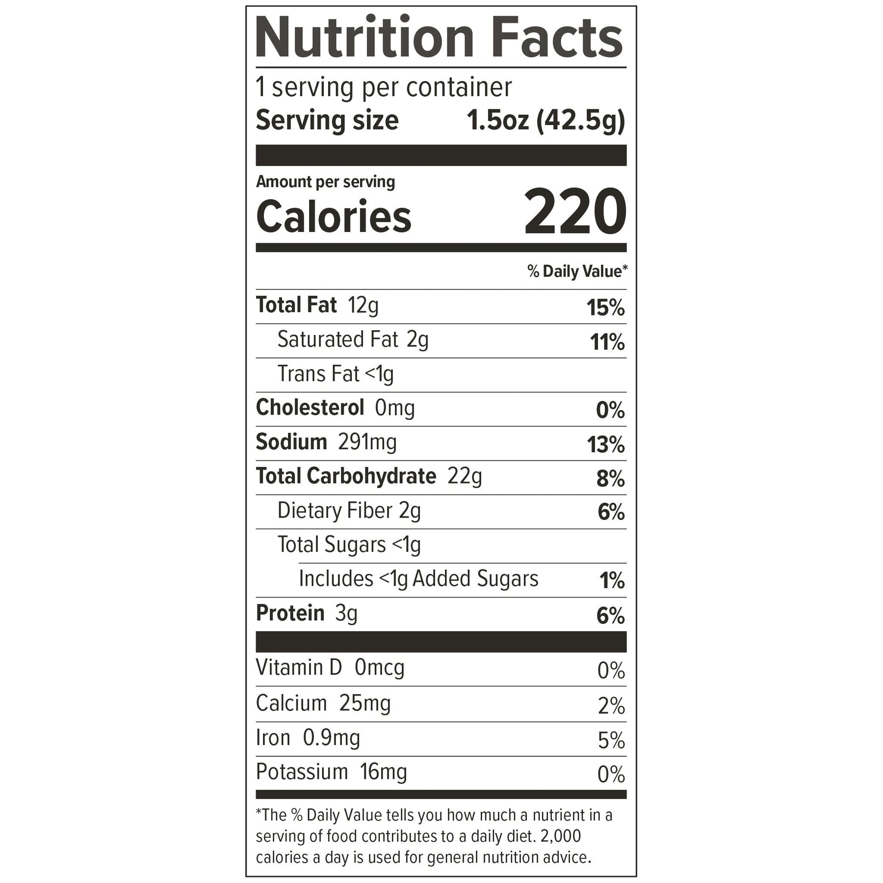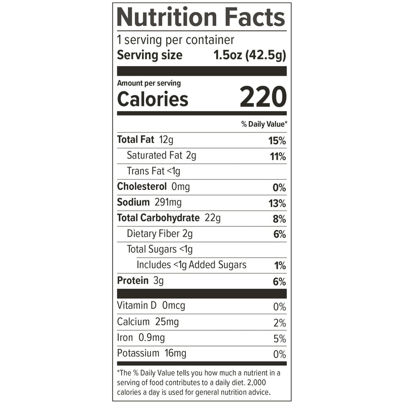 Ingredients: Potatoes, Sunflower or Soybean Oil, Maltodextrin, Sugar, Salt, Dextrose, Spices, Onion Powder, Dehydrated Tomato, Mustard (Mustard Seed, Vinegar, Salt), Contains 2% or less of: White Distilled Vinegar, Yeast Extract, Citric Acid, Natural Flavors, Turmeric Extract (Color)