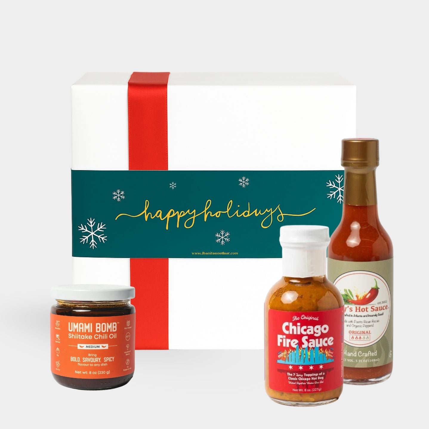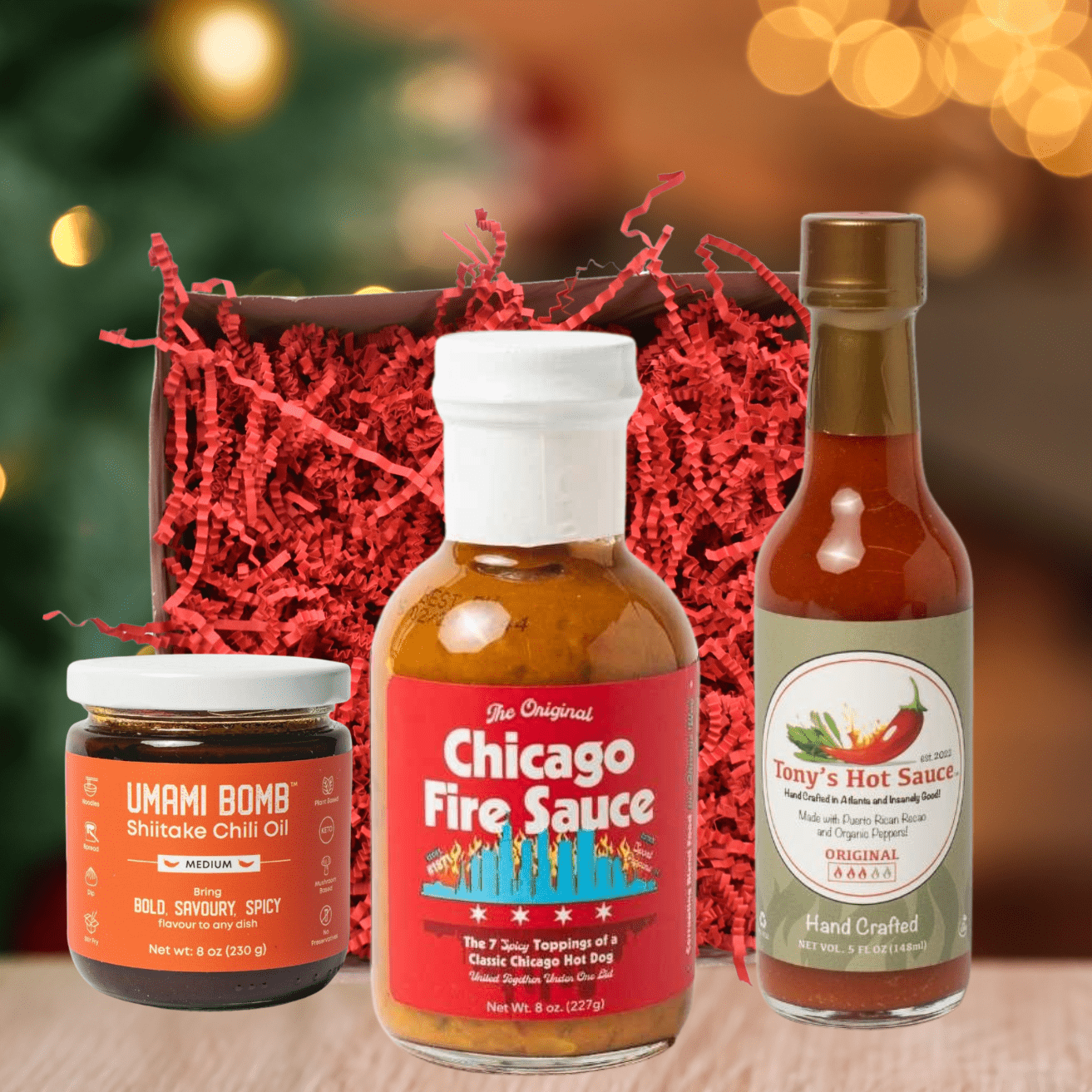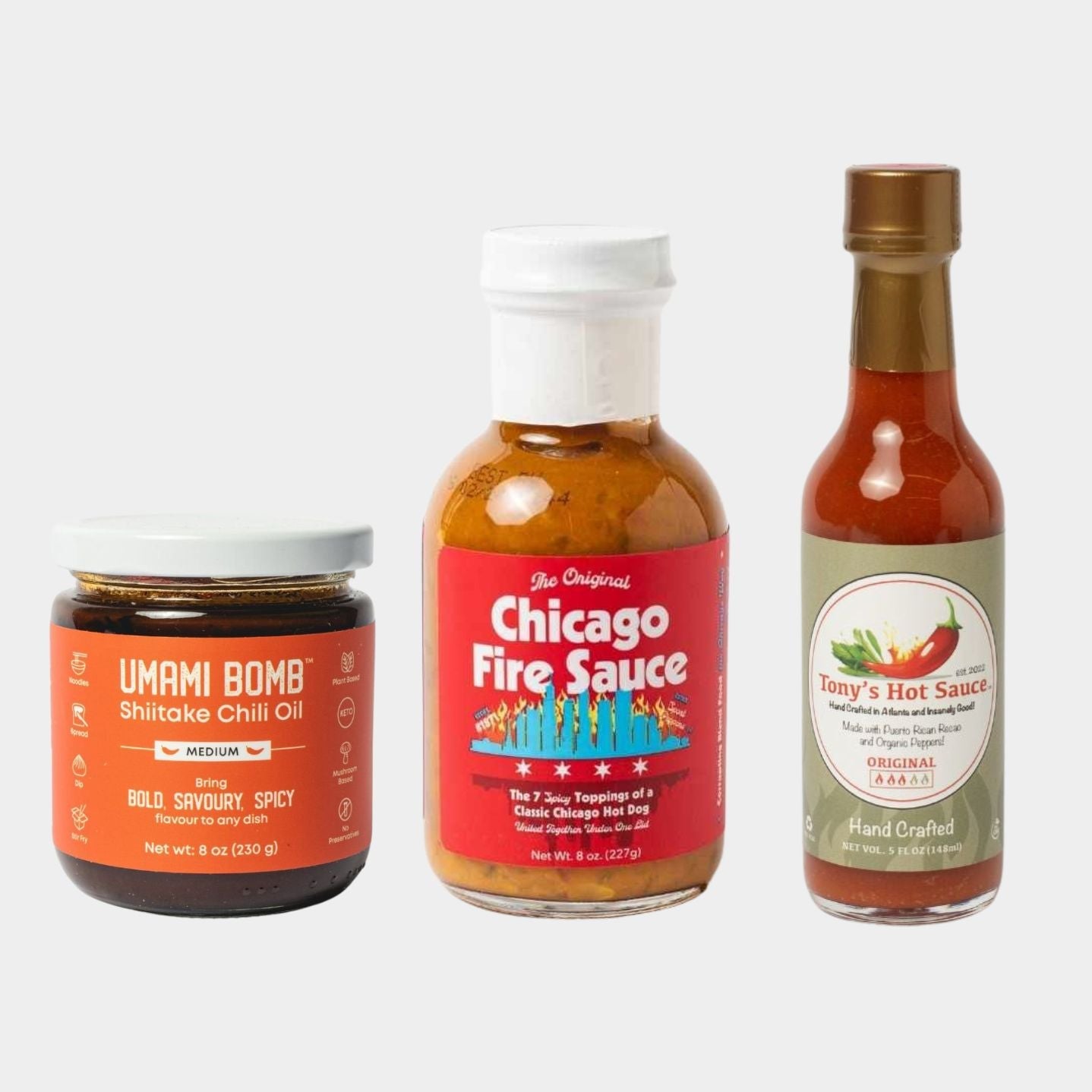 For spice lovers who live boldly and flavorfully. This curated trio turns up the heat with a savory umami bomb, handcrafted original hot sauce, and fiery Chicago-style hot sauce—perfect for adding a punch of excitement to any dish. Bold, daring, and unapologetically flavorful.