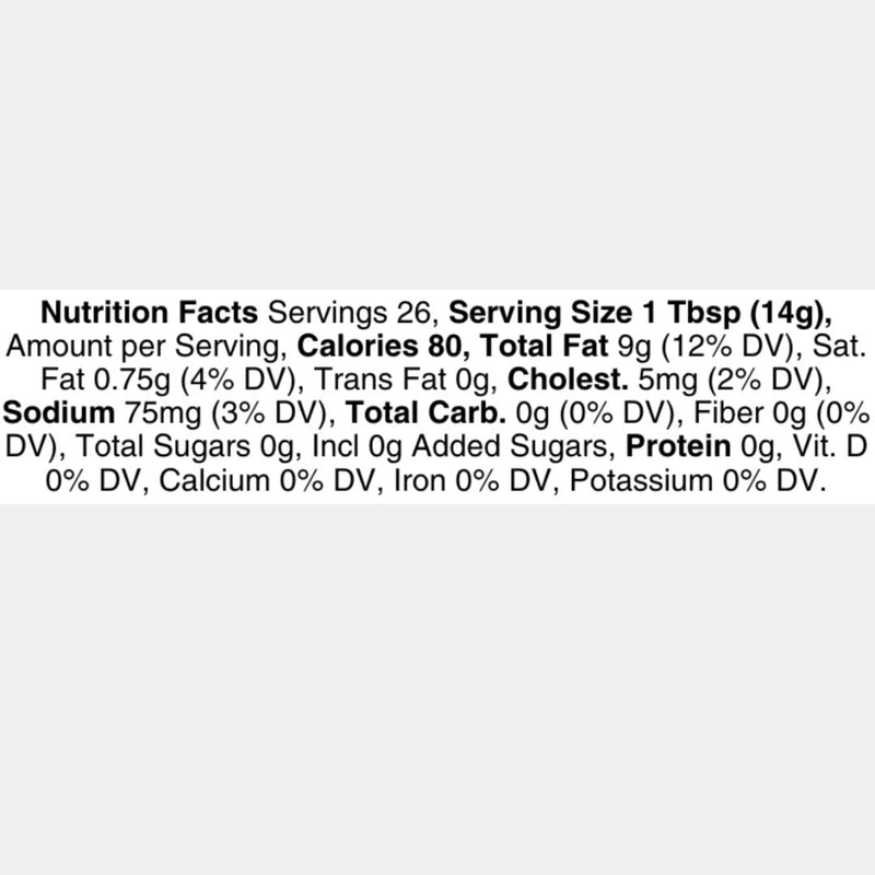 Ingredients: Vegetable Oil (Canola Oil, Soybean Oil), Pasteurized Eggs, Vinegar, Assorted Vegetables (Peppers, Carrots, Cauliflower, Celery, Gherkins), Calcium Chloride and Sodium Bisulfite, Sodium Benzoate, Xanthan Gum, Lecithin, Salt, Sugar, Spices.