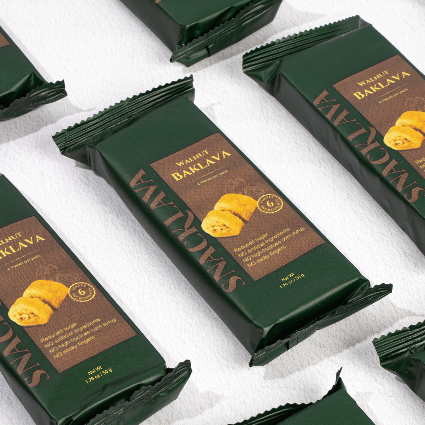 Dar Baklava is on a mission to make baklava as well known as the macarons of France and the biscotti of Italy. Walnut Snacklava is a better-for-you baklava treat made with 80% premium nuts in every piece, no artificial ingredients, high protein, finger-digit-size bites (portion-control) with minimum syrup (hence the slogan, “No Sticky Fingers”) compared to other baklava that are 50-60% syrup.